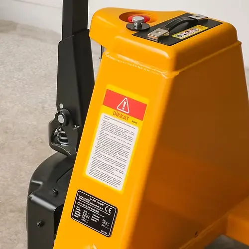 Güvenliğinizi her zaman ön planda tutan bu transpalet, acil stop butonu ve kullanıcı dostu kontrol paneliyle güvenli bir taşıma işlemi sunar. Bakım gerektirmeyen döküm pompa sistemi ve yüksek darbe dayanımına sahip poliüretan tekerlekleri, ürünün uzun ömürlü ve dayanıklı olmasını sağlar. Ayrıca, 1 yıl üretici garantisiyle içiniz rahat olur.