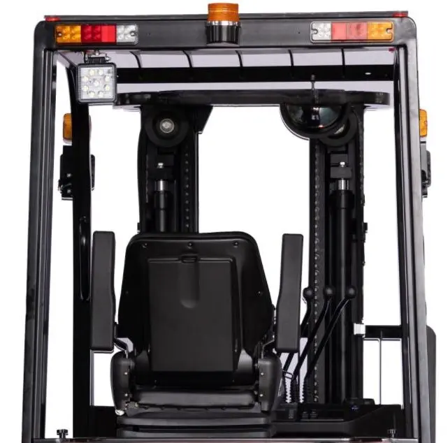 • Güçlü Şase: Dayanıklı şase yapısı ve denge ağırlığı, forkliftin yüksek yük kaldırma kapasitesini destekler. Ayrıca, kabin üstü şeffaf koruma, düşebilecek cisimlere karşı operatörün tam güvenliğini sağlar.