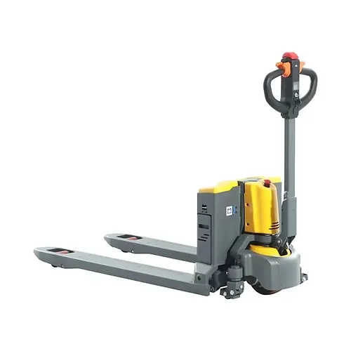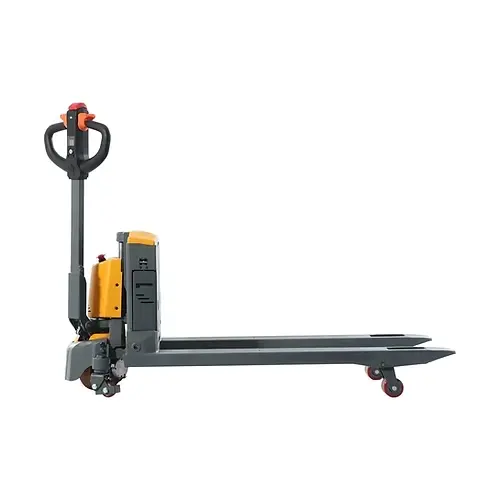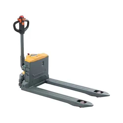Mükemmel tasarıma sahip elektrikli transpalet & akülü transpalet modellerimiz depolama ve taşıma işlemlerinizde ekibinize konforlu bir sürüş keyfi sağlar. Elektrikli & Akülü istif makinası, 2000 kg taşıma kapasitesiyle ağır yükleri rahatça taşıyabilir ve 110 mm kaldırma yüksekliği sunar. Kompakt yapısı sayesinde 1545 mm uzunluk ve 550 mm genişlik ile dar alanlarda etkili kullanım sağlar. Poliüretan tekerlekler ve elektromanyetik fren sistemi, sessiz ve güvenli bir çalışma ortamı sunar. 0.65 kW yürüyüş motoru ve 0.8 kW kaldırma motoru güçlü performans sağlarken, 24V/20Ah akü kapasitesi uzun süreli kullanım imkanı sunar.